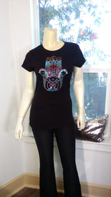 Women Short Sleeve T shirt - Rhinestone Cotton/Spandex