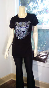 Women & Junior Short Sleeve T Shirt - Rhinestone Tiger By Bling Bling U Sparkle Girl
